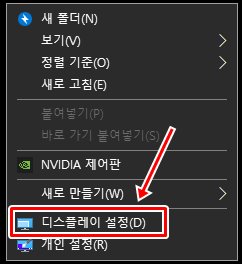2. 바탕화면 마우스 오른쪽 버튼 → 디스플레이 설정 → 디스플레이 선택 ( 기본적으로 선택되어 있으나, 되어 있지 않다면 선택 ) → 색 → 야간모드 켬 → 야간모드 설정 (좀 더 상세하게 설정하고 싶은 경우)